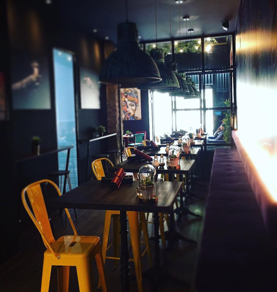 El diseño de este local se caracteriza por una estética contemporánea, donde el contraste cromático es el protagonista. La fachada, de líneas limpias y elegantes, se proyecta hacia el exterior mediante una terraza diseñada para invitar al transeúnte a detenerse.