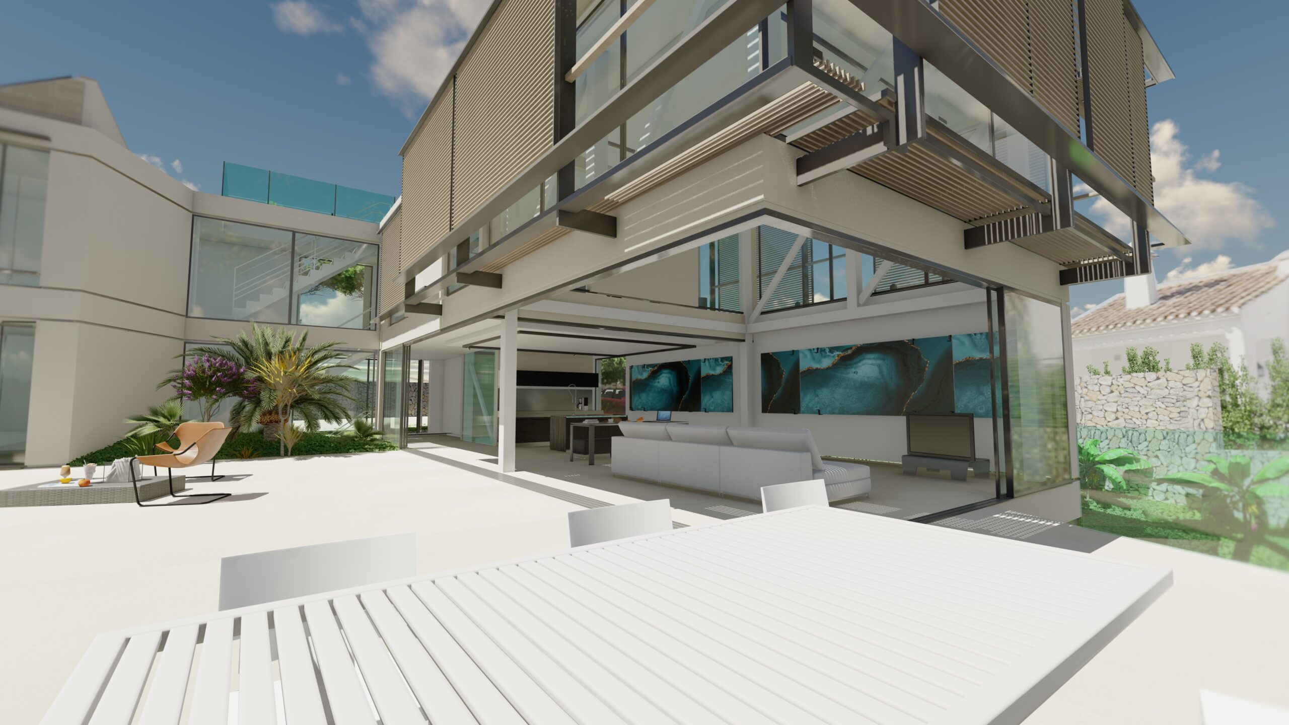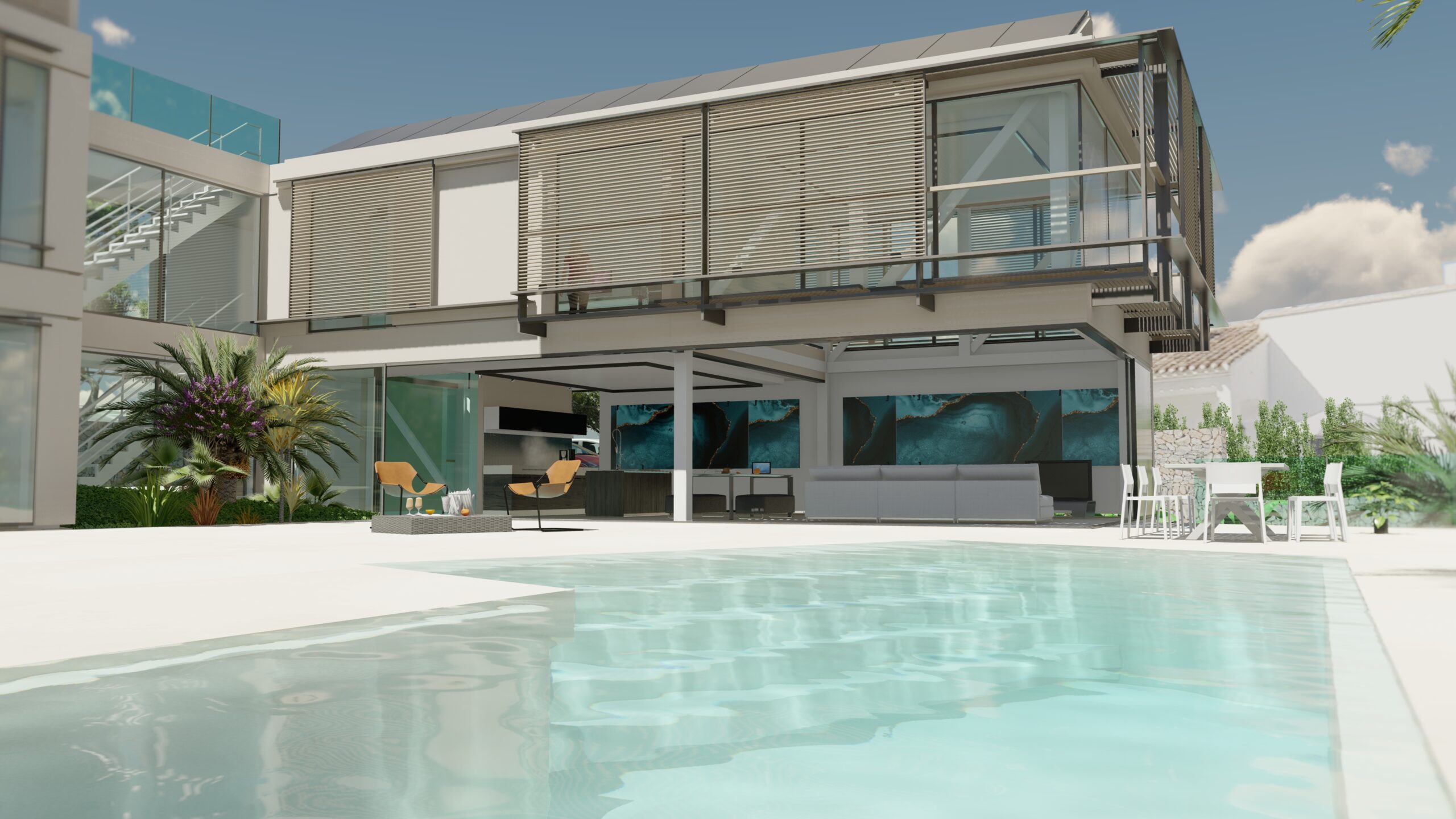 Integración Mediterránea: Gracias al trabajo conjunto con Dean Architecture y Arbocer, se ha logrado maximizar la luz natural y crear ambientes exteriores que dialogan perfectamente con la edificación.